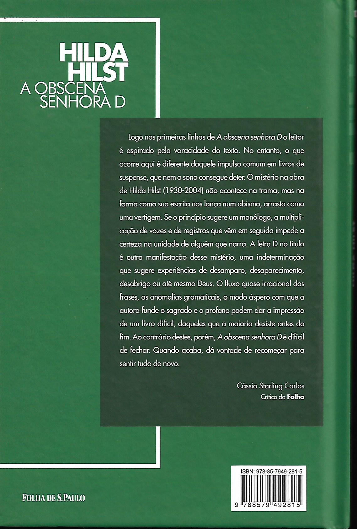 GRANDES NOMES DA LITERATURA A OBSCENA SENHORA D